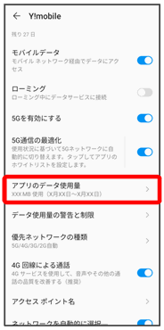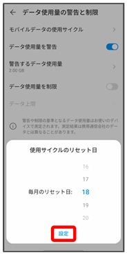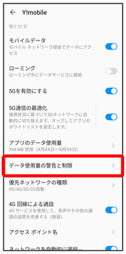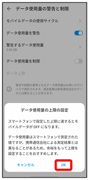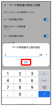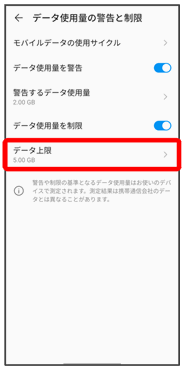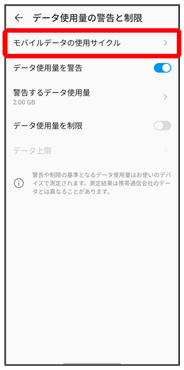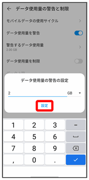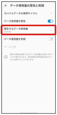 モバイルデータ通信の使用量を確認したり、使用を制限することができます。