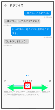 | 表示サイズ | 画面に表示される画像やアイコンなどの大きさを設定します。 | |