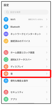 | タッチ操作音 | 画面のタップ時に音を鳴らすかどうかを設定します。 | |