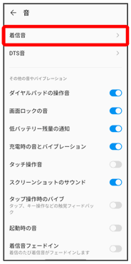 | ダイヤルパッドの操作音 | ダイヤルキーのタップ時に音を鳴らすかどうかを設定します。 | |