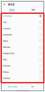 | 着信音フェードイン | 着信音の音量をだんだん大きくさせるかどうかを設定します。 |