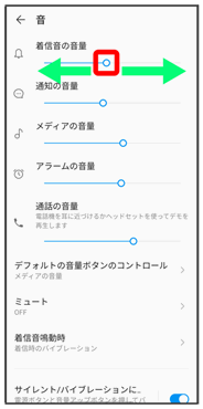 | デフォルトの音量ボタンのコントロール | 音量大キー/音量小キーを押したときに着信音の音量/メディアの音量のどちらを調整するかどうかを設定します。 | |
