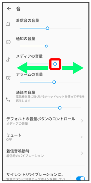 | メディアの音量 | 音楽や動画などの音量を設定します。 | |