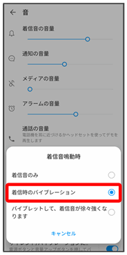 | 着信音鳴動時 | 着信音と同時にバイブレータを動作させるかどうかを設定します。 | |