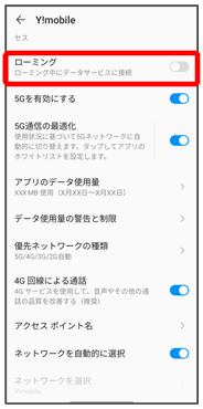 • ローミングをタップするたびに、有効(libero-5g_icon_401)/無効(libero-5g_icon_400)が切り替わります。