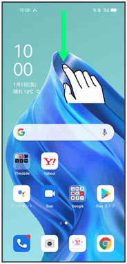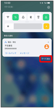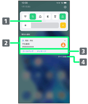 ステータスバーを下にフリック/スワイプすると、通知バーを開くことができます。通知バーでは、通知アイコンとその内容を確認できます。