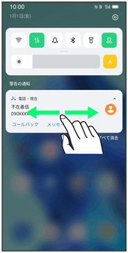 2通知を左右どちらにフリックしても、通知を削除することができます。