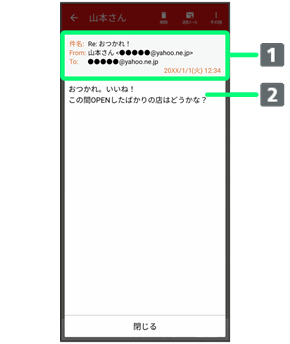 • 添付画像のときは、メール送受信画面で画像をタップしても画像の保存画面が表示されます。