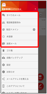 • ↓すべてのメール電話帳登録済み指定ドメイン未登録迷惑メール