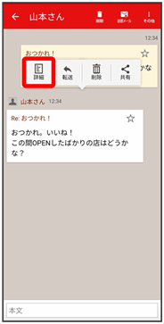 • ↓メール送受信画面で、宛先グループ(相手)名をタップ