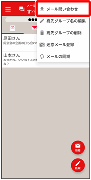 • 相手を限定せずに、迷惑メール以外の受信したすべてのメールを確認するときは、すべてのメールをタップします。