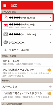 | アカウントの別表示 | Y!mobile メールと連携しているYahoo!メールを個別に表示させるかどうかを設定します。 |