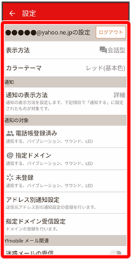 | ログアウト | 設定中のメールアカウントからログアウトします。 | |