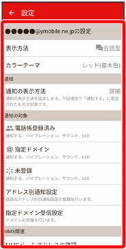 | 指定ドメイン | 指定ドメインに登録した相手からメールを受信したときの通知方法を設定します。 | |