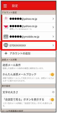 | アカウント設定 | メールアカウントの設定ができます。詳しくは、「Y!mobile メールの設定」「MMSの設定」「SMSの設定」を参照してください。 | |