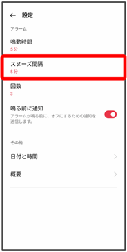 • 画面ロックを解除しているときは、アラーム通知のスヌーズ停止をタップします。