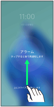 • ↓アラーム通知の画面で画面を上にフリック/スワイプ