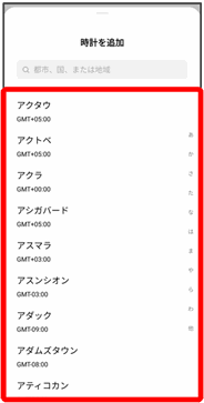 • ↓世界時計画面で削除する都市をロングタッチ(oppo-reno5-a_icon_146表示)