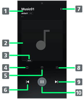 プレイリストへの追加や効果音、スリープタイマーの設定などを行います。