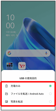• ↓充電のみファイルを転送/Android Auto写真を転送