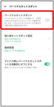 • ↓パーソナルホットスポットoppo-reno5-a_icon_010表示)