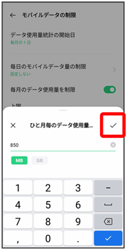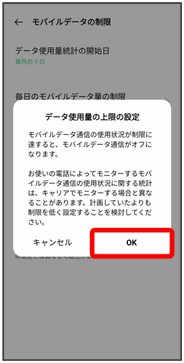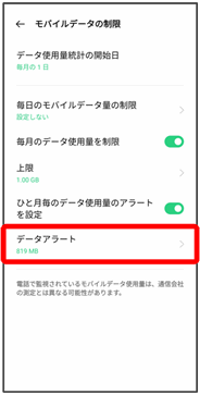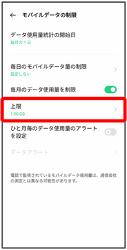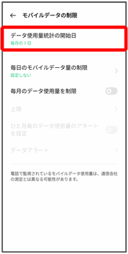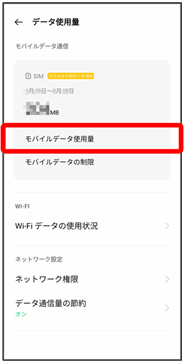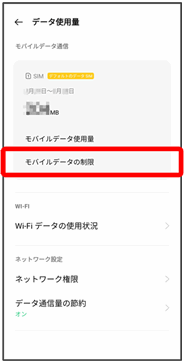モバイルデータ通信の使用量を確認したり、使用を制限することができます。