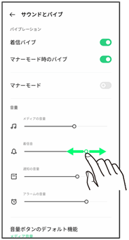 音量ボタンのデフォルト機能 音量ボタンを押したときにメディア音量を調節するか、着信音量を調節するかを設定します。