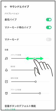 • ↓「メディアの音量」のバーを左右にドラッグ