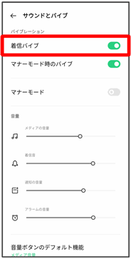 マナーモード時のバイブ マナーモードを有効にしたときにバイブレーションを動作させるかどうかを設定します。