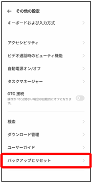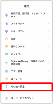 | OTG 接続 | USB変換ケーブルなどを使用して端末同士の充電やデータ転送ができる「USB On-The-Go」の機能を利用するかどうかを設定します。 | |