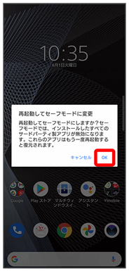 • セーフモードで電源を入れると、画面左下に「セーフモード」と表示されます。