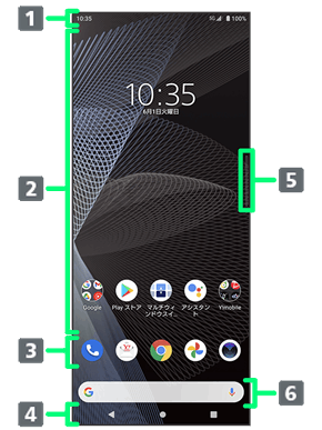 | サイドセンスメニューの表示やバック操作、マルチウィンドウメニューの表示などができます。サイドセンスバーについて詳しくは、「サイドセンスについて」を参照してください。 | ||
