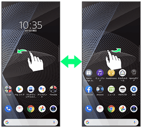 各ホーム画面シートをアプリのショートカットやウィジェットなどでカスタマイズして、便利に使用できます。ホーム画面を左右にフリックすると、ホーム画面シートを切り替えることができます。
