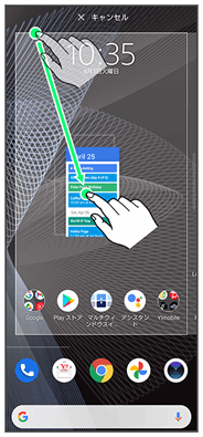 | アプリの使用履歴画面が表示され、アプリの起動/終了などができます。また、表示されたアプリをスクリーンショットで撮影したり、ポップアップウィンドウで表示したり、マルチウィンドウスイッチを起動することができます。 詳しくは、「スクリーンショットを撮る」「ポップアップウィンドウ」「マルチウィンドウ」を参照してください。 |