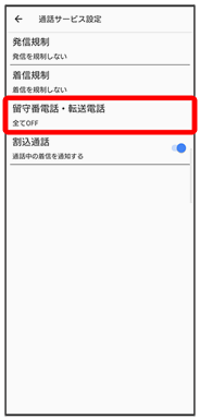 通話設定画面が表示されます。