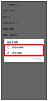 • ↓番号を非通知番号を通知