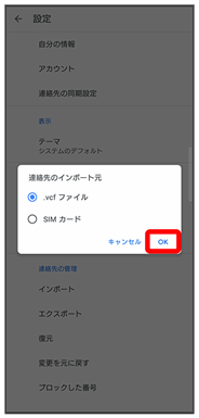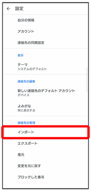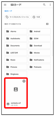 SDカードに保存(バックアップ)した電話帳データを読み込み(インポート)できます。