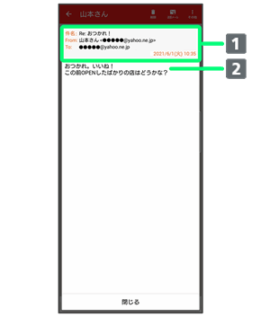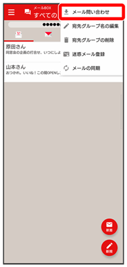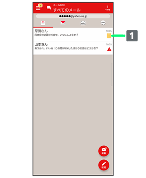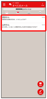 • 相手を限定せずに、迷惑メール以外の受信したすべてのメールを確認するときは、すべてのメールをタップします。