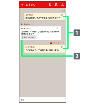 • ↓メール送受信画面で、宛先グループ(相手)名をタップ