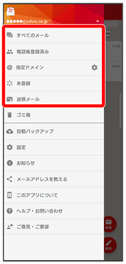 • ↓すべてのメール電話帳登録済み指定ドメイン未登録迷惑メール