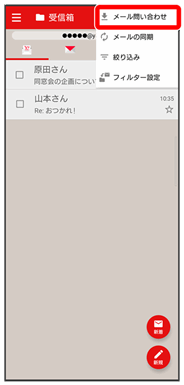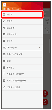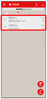 • 受信箱画面で下にドラッグ/フリックしても新着メールの確認ができます。