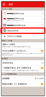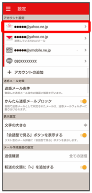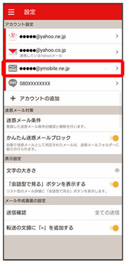• ↓Y!mobile メール設定画面で、Y!mobile メールのアカウントをタップ