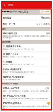 設定できる項目は次のとおりです。Yahoo!メールの設定も同じ項目です。