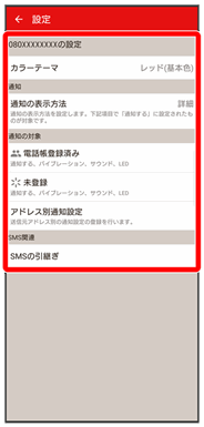 電話帳登録済み 電話帳に登録済みの相手からメールを受信したときの通知方法を設定します。