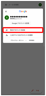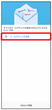 • あらかじめGoogle アカウントでログインしている場合は、GMAILに移動をタップしてGmailを利用できます。他のメールアドレスを追加をタップして、ほかのメールアドレスを追加することもできます。