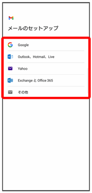 Gmailを利用するには、Google アカウントまたはeメールアカウントの設定が必要です。