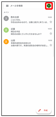• ↓メール一覧画面でアカウントのアイコンをタップ