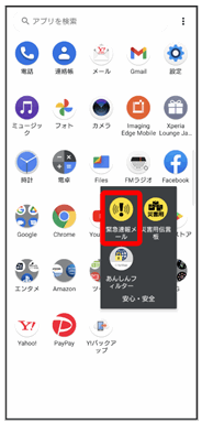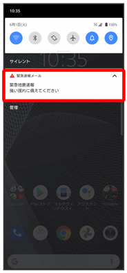 とメッセージが表示され、緊急地震速報の警告音/津波警報、災害・避難情報の専用着信音およびバイブレーションでお知らせします。
