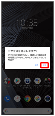 本機とパソコンをUSB Type-Cケーブルで接続すると、アクセス許可の画面が表示されます。
