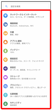 | 機器接続 | Bluetooth接続やNFC/おサイフケータイ®設定など、ほかの機器との接続に関する設定ができます。 | |